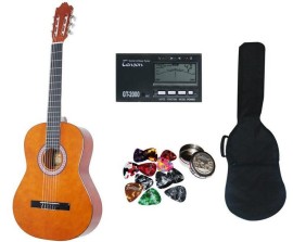 Guitarra Española Clásica + afinador + 12 puas + funda + 1 mes de clases de guitarra